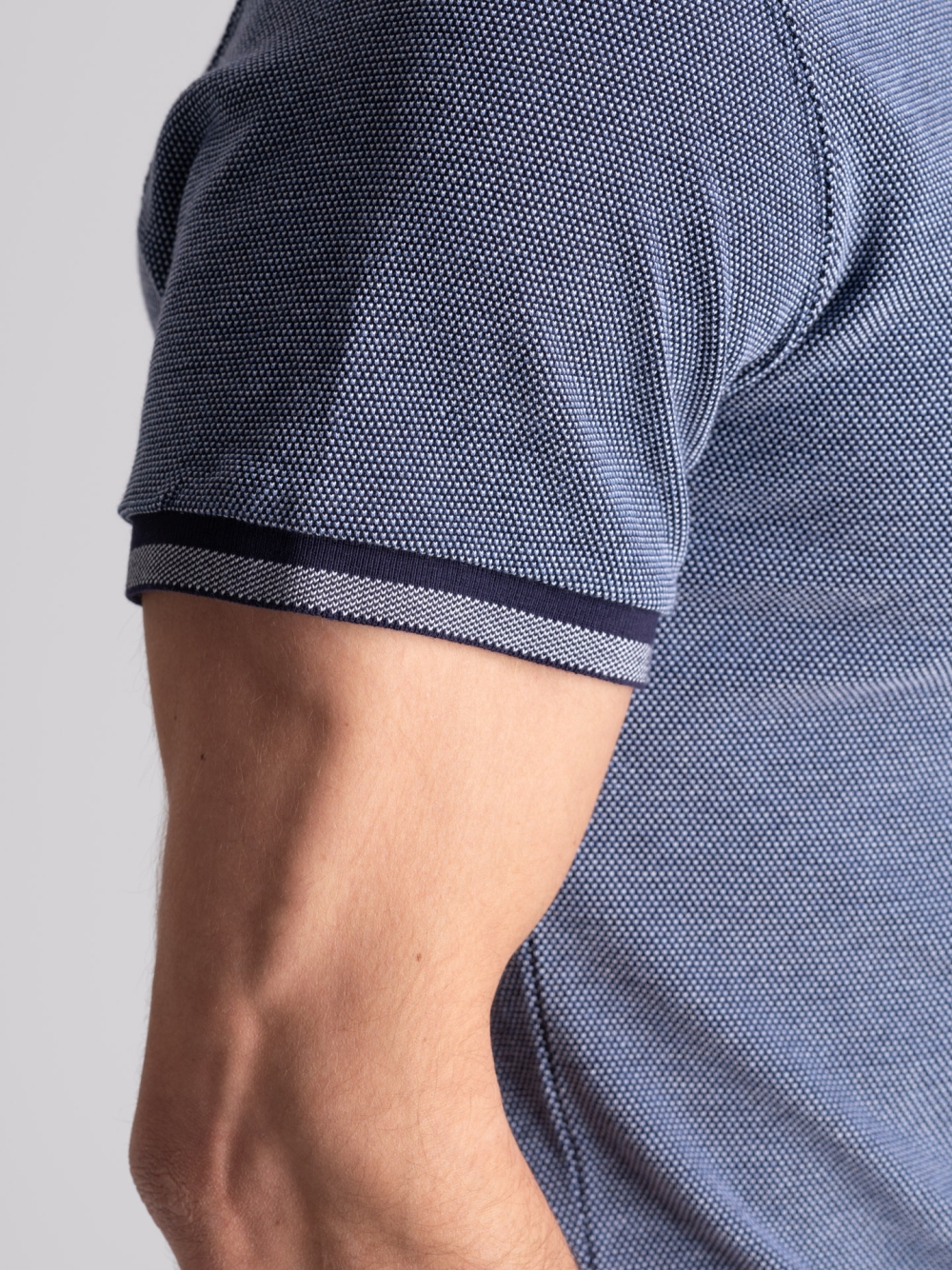 Polo uomo mezza manica realizzata in tessuto tinto filo 100% cotone piquet a quattro fili effetto melange, caratterizzata dal collo a costina con profili a contrasto, canolo a contrasto e logo INVIDIA 1973 ricamato.