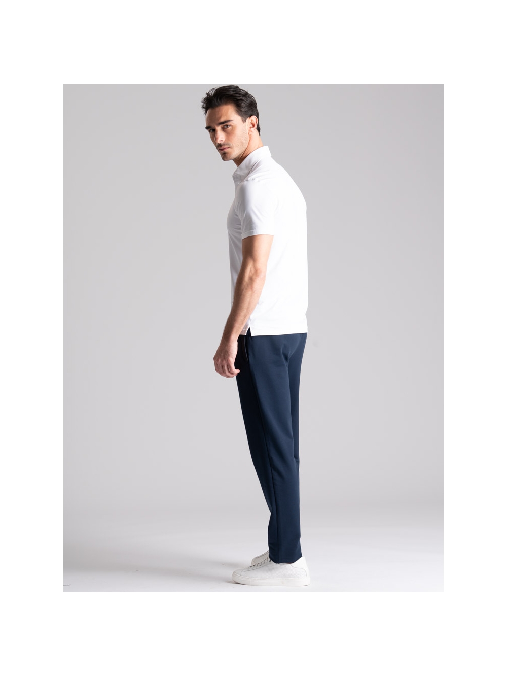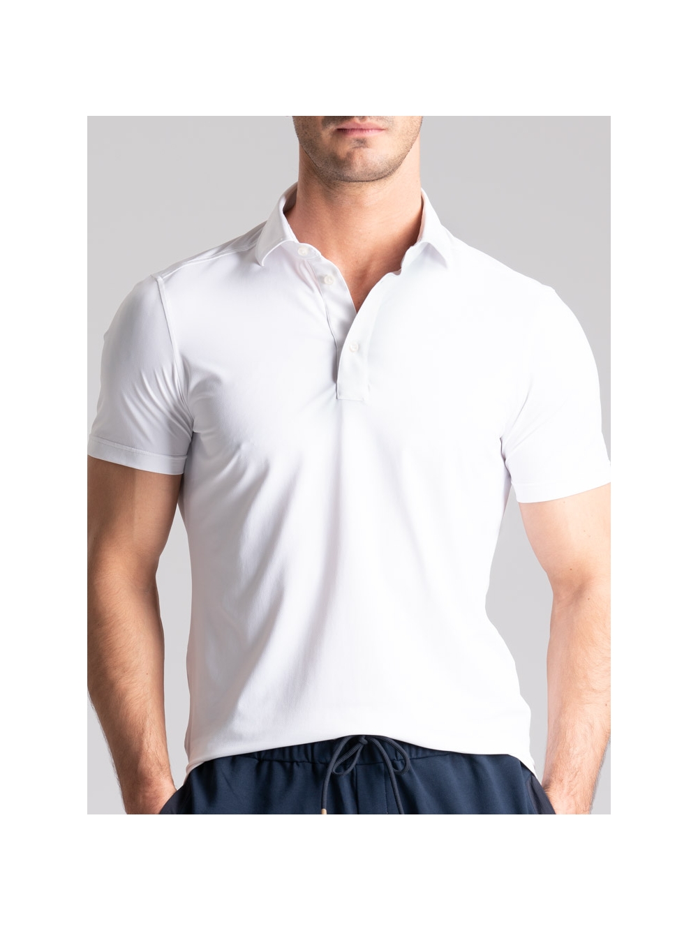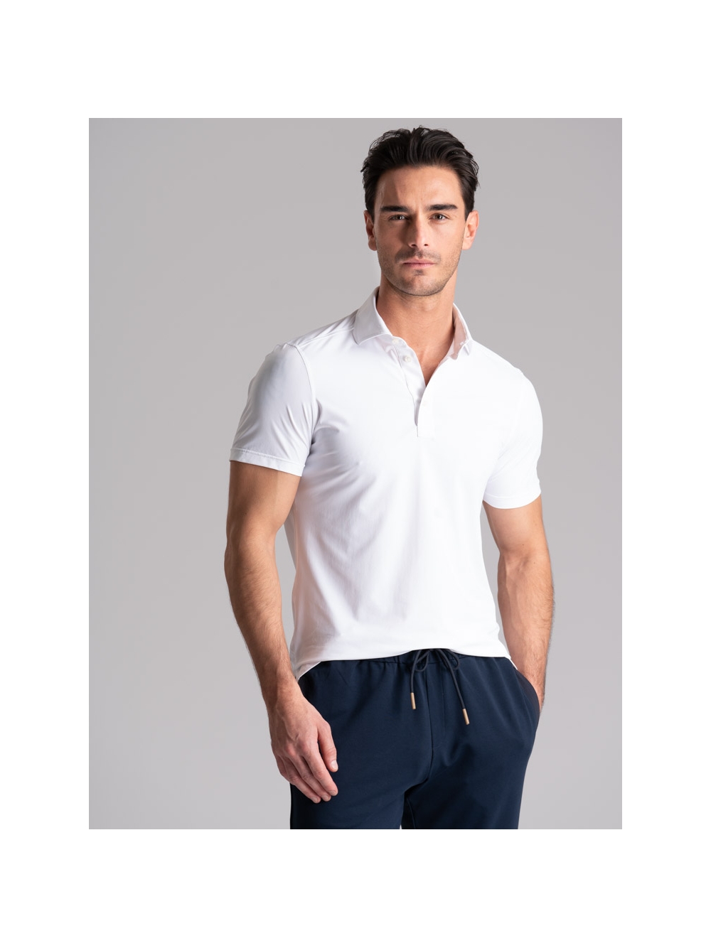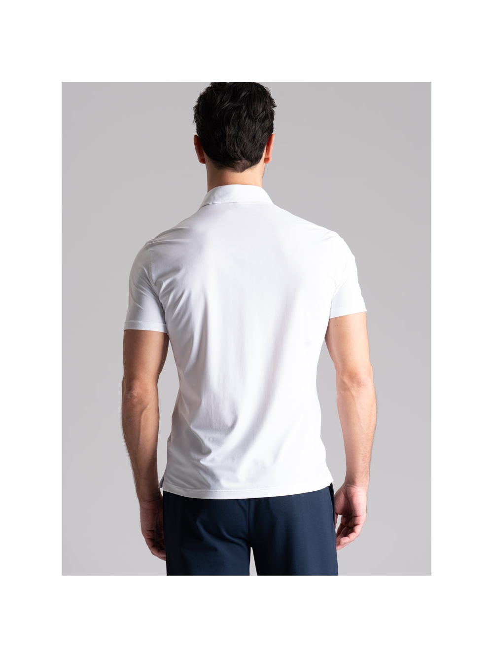 Polo uomo mezza manica con collo camicia realizzata in tessuto TECNO micro traforato tinta unita nero. I tessuti della linea TECNO sono altamente performanti e assicurano: elasticità e resistenza, perfetta vestibilità, traspirabilità e leggerezza, controllo termico, rapida asciugatura e stiro facile.