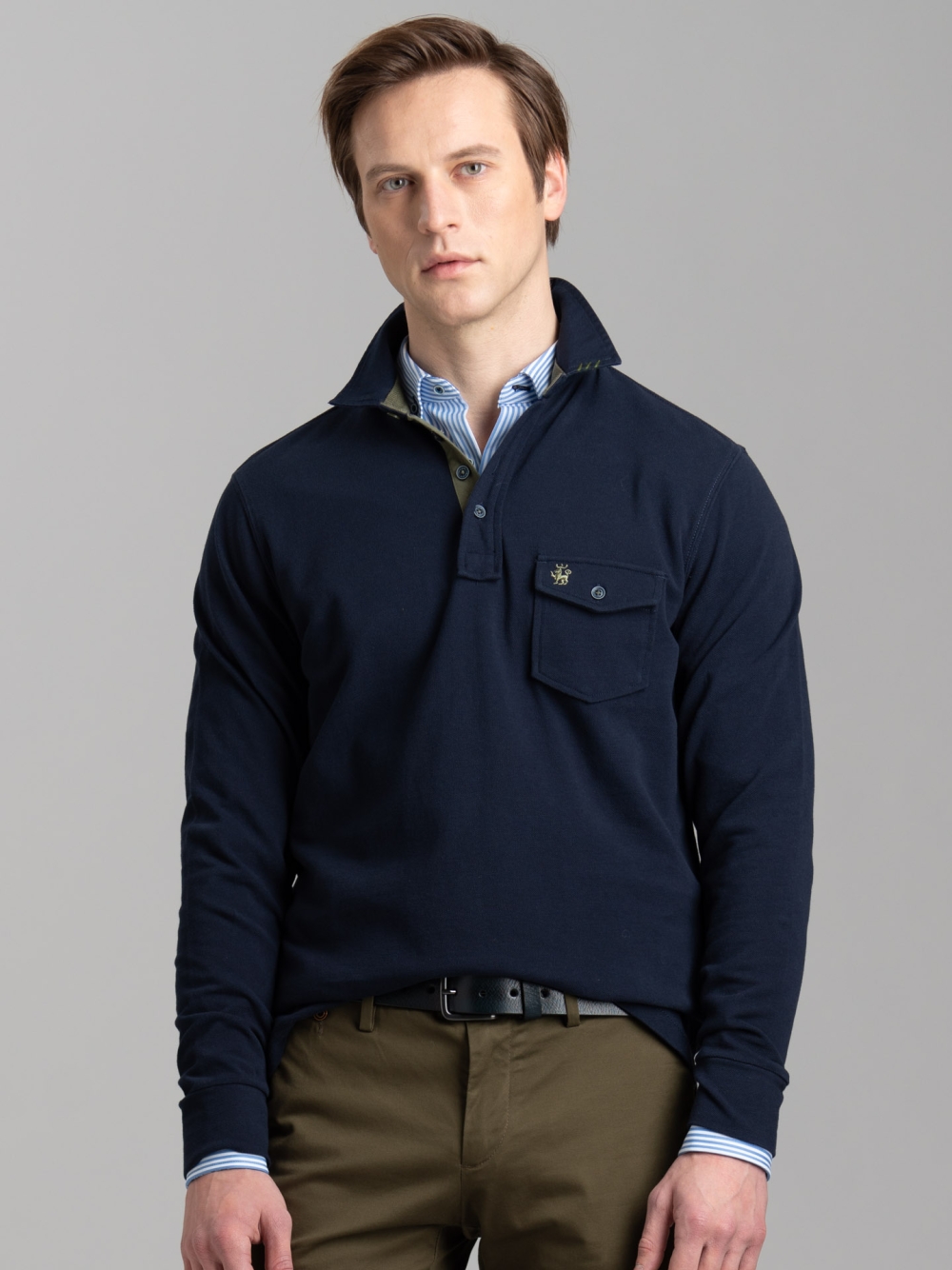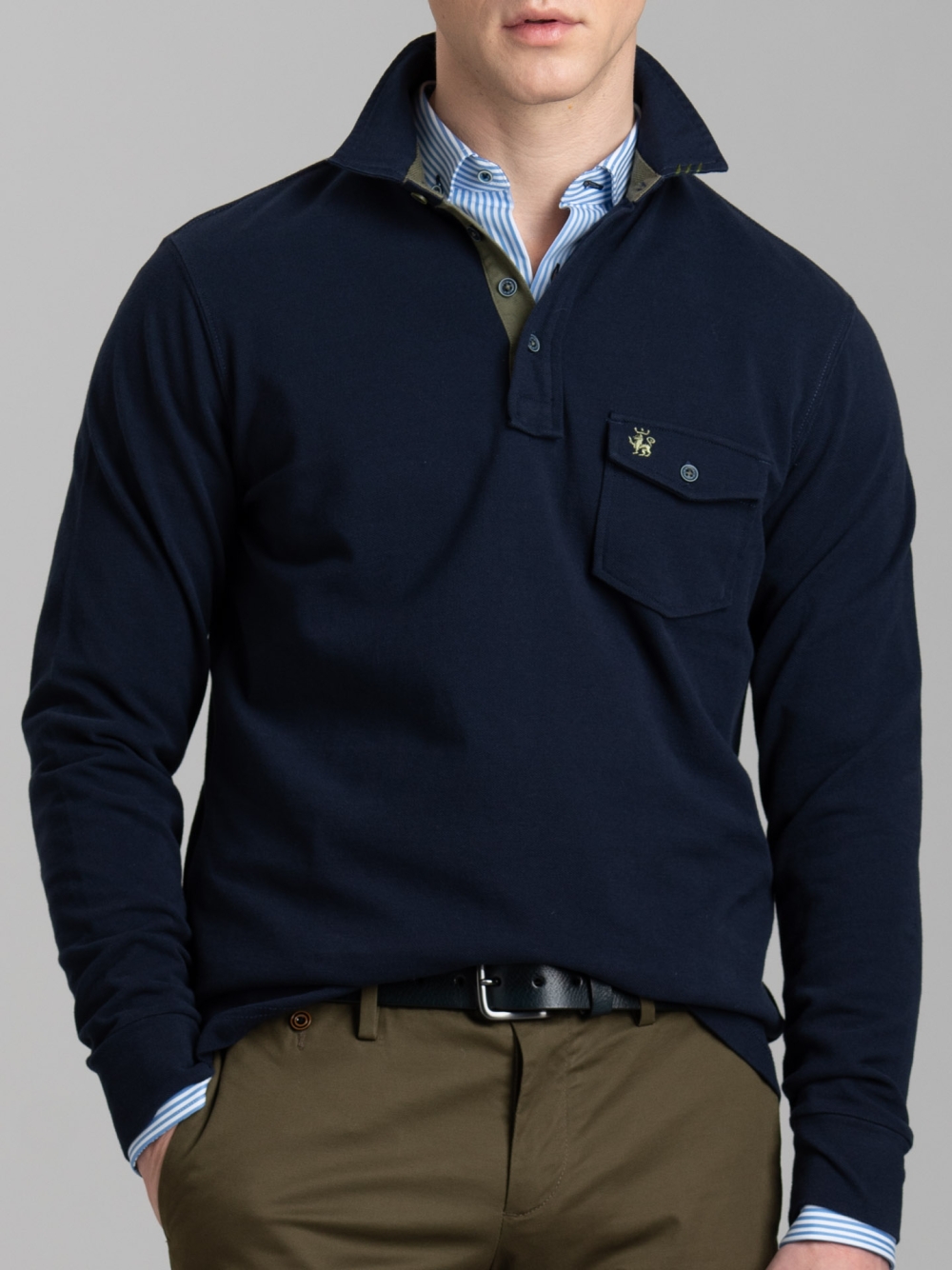 Polo uomo a manica lunga con taschino