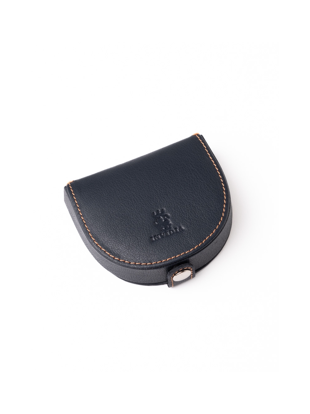 Portamonete Tacco uomo realizzato in vera pelle nel modello Tacco a saccoccia con tasca interna e chiusura con bottone automatico. Con un elegante logo INVIDIA 1973 e raffinate impunture a contrasto color arancione, il portamonete è disponibile nelle varianti colore nero, blu e moro e ogni modello è abbinato al portafoglio in pelle.