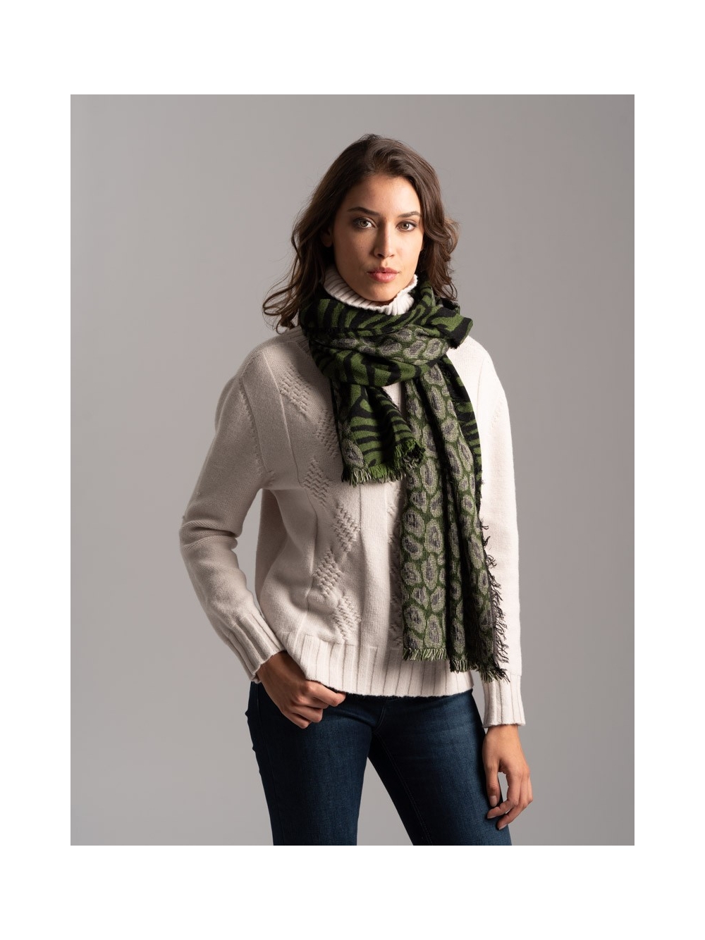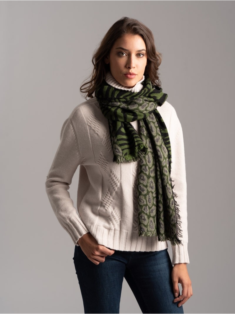 Sciarpa donna disegno animalier, nei toni dei colori verde/nero