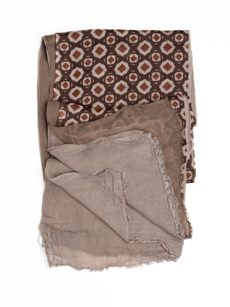 Sciarpa uomo in viscosa composta da quattro tessuti sovrapposti, uno dei quali con stampa, tutti tono su tono.
