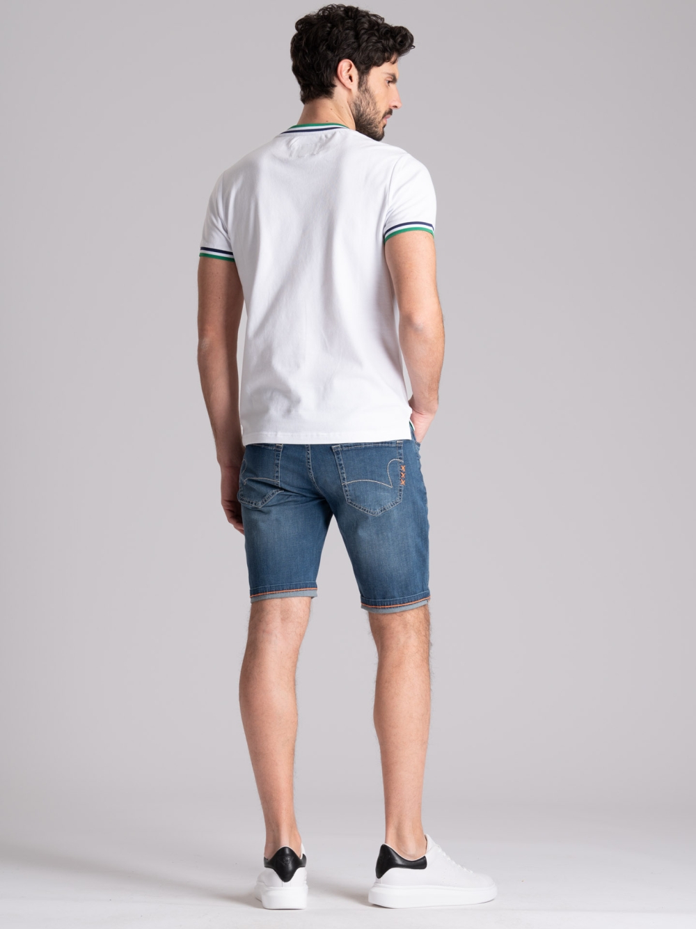 T-shirt uomo girocollo modello mezza manica, realizzata in fresco tessuto di cotone stretch. Questa maglietta uomo è caratterizzata da applicazioni in tessuto poliestere a contrasto su collo e polsi, che danno lucentezza al capo. Disponibile nelle varianti colore blu chiaro e bianco.