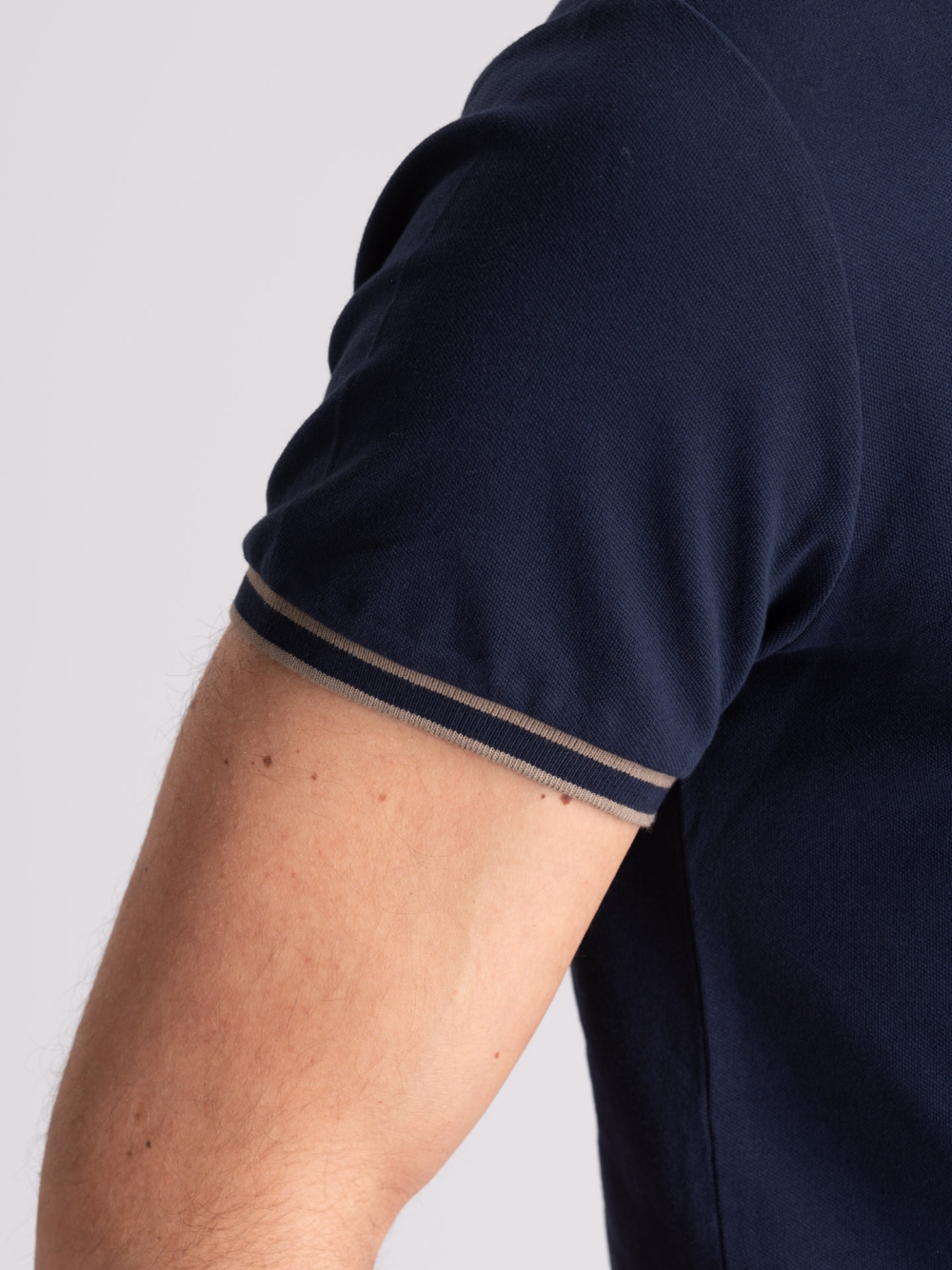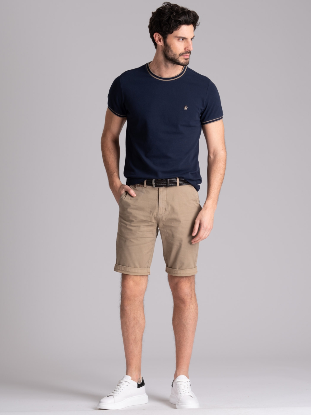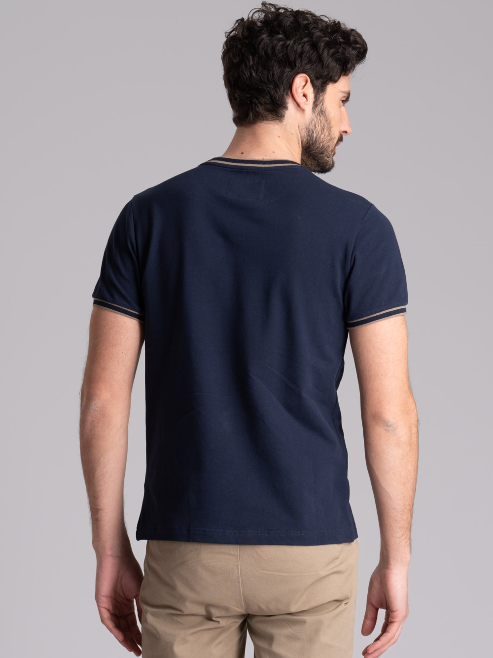T-shirt uomo mezza manica realizzata in tessuto di cotone tinta unita con dettagli a contrasto sul collo e la manica.